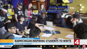 WDIV’s Local 4 News Anchor Evrod Cassimy visited 826michigan’s Detroit Robot Factory in June 2019. He was able to connect with our Executive Director, Dr. Naimah Wade, and our Community Engagement Manager, Courtney Wise Randolph, on the tremendous impact our programming has in the city. This video, produced by the Local 4 News team and originally shared on their Your Neighborhood segment, includes highlights from their visit and a glimpse of our students writing original songs at Third Man Records-Cass Corridor.