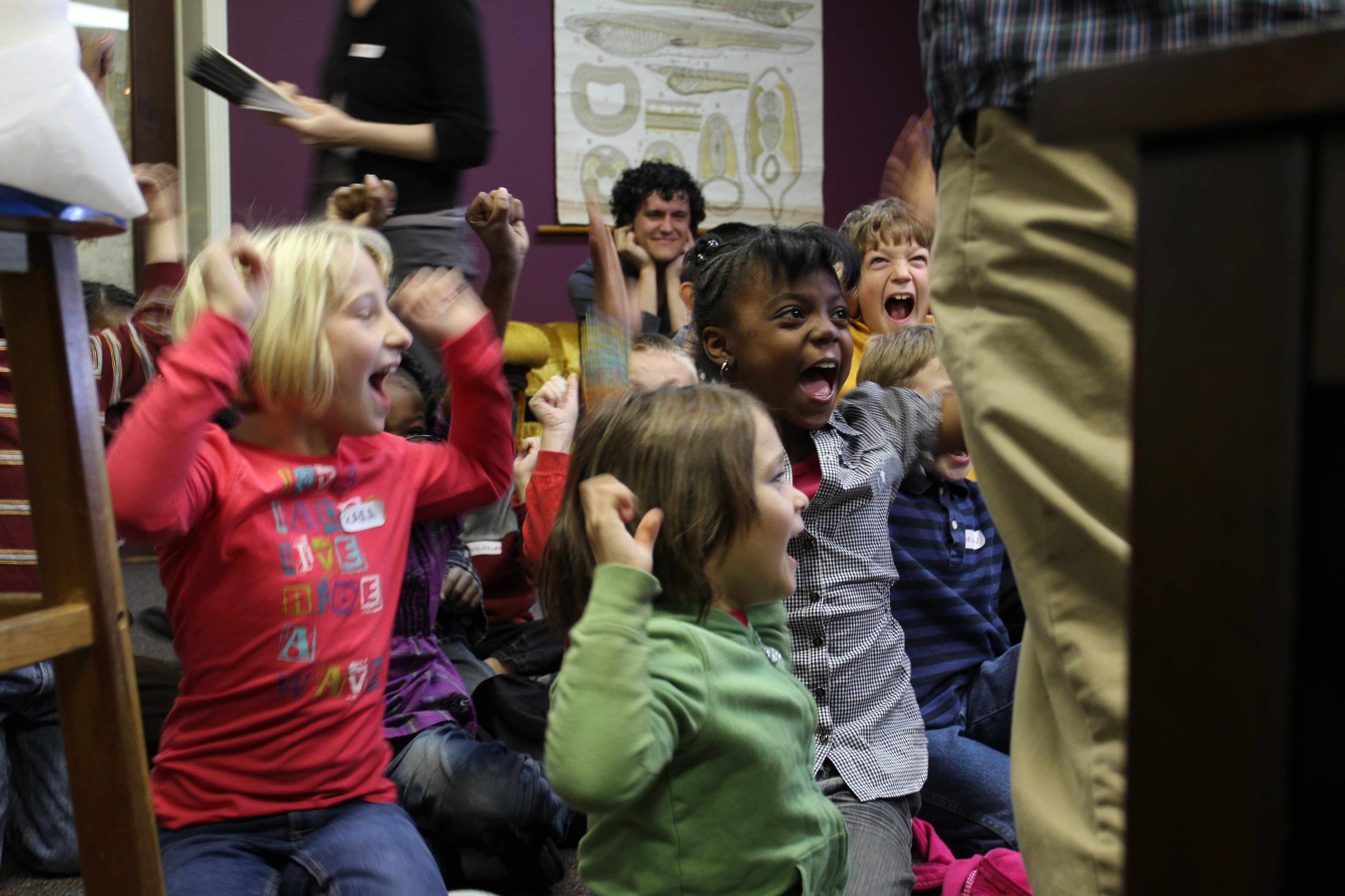 Twice a week on Wednesday and Friday mornings, classes of first through sixth grade students visit 826michigan (located inside Liberty Street Robot Supply and Repair) for a two-hour writing seminar field trip. The field trips range in topic from Choose Your Own Adventure-style stories, to mystery writing (and solving!), to board games where students must write poetry to earn points, to short stories for our somewhat (okay, very) cantankerous and peculiar editor Dr. Blotch. The writerly energy and enthusiasm (what some might call magic) that we generate on any given Wednesday and Friday morning is difficult to describe, but folks always want to know how we do it.