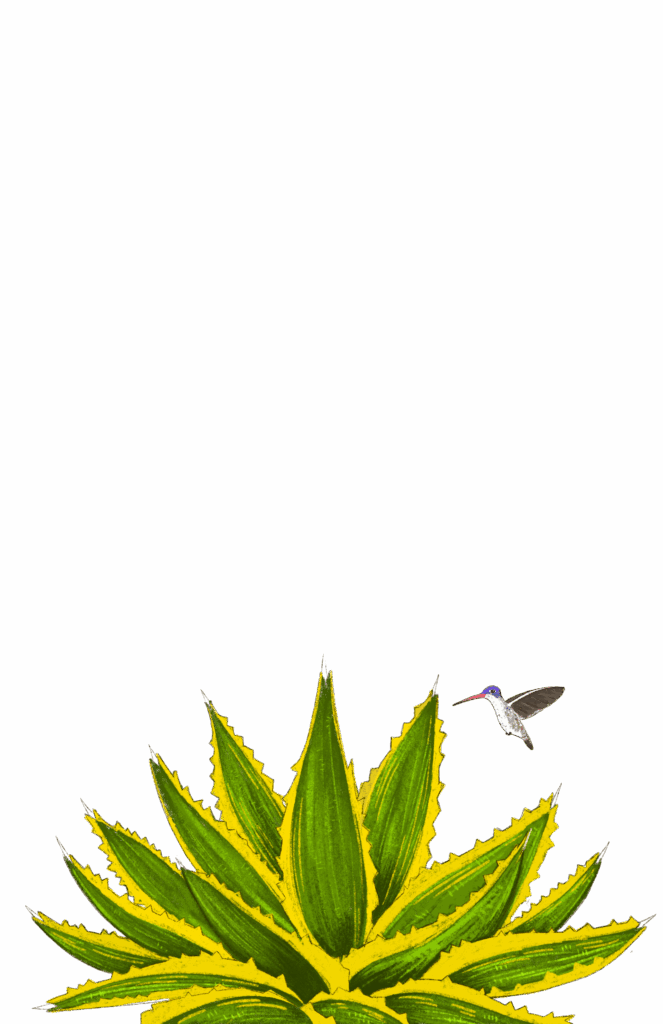 Their home was nest-looking with a hole that the hummingbird used to enter. They had a party all night because the quadricolor century cactus plant had flowered after one hundred years!