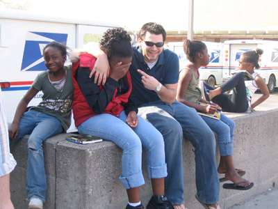 Last spring, we took the girls in the Friday writing workshop on a bus ride, and had them write poems about it. Waiting for the bus looked like this: