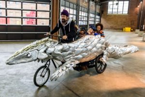 In addition to the animal bike project, Juan has used his talent and time to support 826michigan in other important ways. For the Detroit Robot Factory store, he’s building an interactive 9 foot tall robot and a you-will-only-believe-it-when-you-see-it book vending machine/ferris wheel. Both of these projects will debut later in 2017.