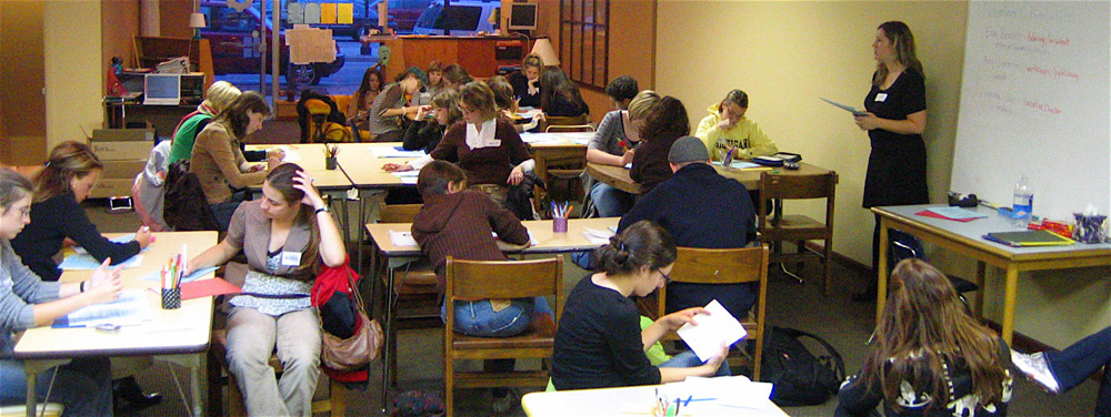 As many of you know, we have volunteer orientations about once a month. These are generally attended by between three and ten people. Last night, we hosted our first orientation at our new site. I’m not good with numbers, but I would say that no fewer than thirty new volunteers showed up. We had a line. And, not only that, this: the excitement was palpable. Everyone was excited and full of ideas and overwhelmed and, well, wonderful. Many volunteers stayed after to talk with us about new and intriguing ways in which they could help. I for one talked to two enthusiastic Borders employees who have a book group idea that you will most certainly be hearing about on our next workshop schedule!
