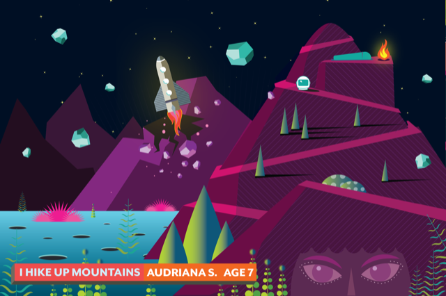 When I wake up in the morning, I walk back home. I brought a helmet to space with me and I go home with a big rocket and it’s a galaxy rocket with little holes and that is how my mountain ends.