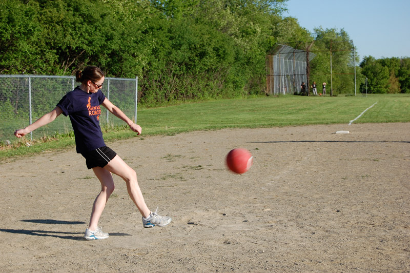 Thirty-six cupcakes and three dozen hugs later, we rushed off to the cheer on 826michigan’s kickball team, Better Bot’s ONWARD ROBOTS! Friends, we are the losingest team in the league! (Although I’m pretty sure we have the most fun. And, between us, two of the games we’ve lost, technically we sort of won. But we don’t like to quibble. And we don’t need to get into that here.) The bottom line is, we have fun! And everyone loves an underdog, right?