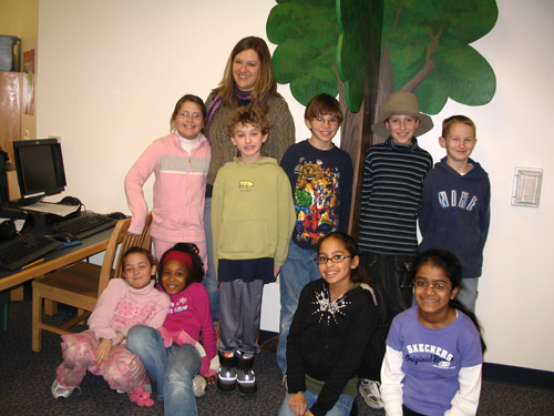 Last night, we wrapped up our last afterschool workshop at Childs Elementary School in the Lincoln Consolidated School District in Ypsilanti. For those of you who don’t have our website as your homepage (and why don’t you, by the way??), and may not be as up on what we’re doing, we’ll fill you in. We’ve been working at Childs all year through a series of afterschool writing workshops, one-on-one editing sessions, and in-class workshops. The best part? Aside from falling madly in love with no fewer than eighty or so more students, we have plans to publish the amazing stories of these third, fourth, and fifth graders in our upcoming publication: Tall Tales & True Stories, due to be released this spring. We will, of course, have more details on that book release (which is well into the planning stages, and is—maybe we don’t need to say this—going to be unbelievably awesome; unbelievably, thanks in no small part to Jared, our illustrious publishing intern) when we know them. In the meantime, please enjoy this picture of our very own Erin Bennett and some young writers who are on the brink of becoming published authors.