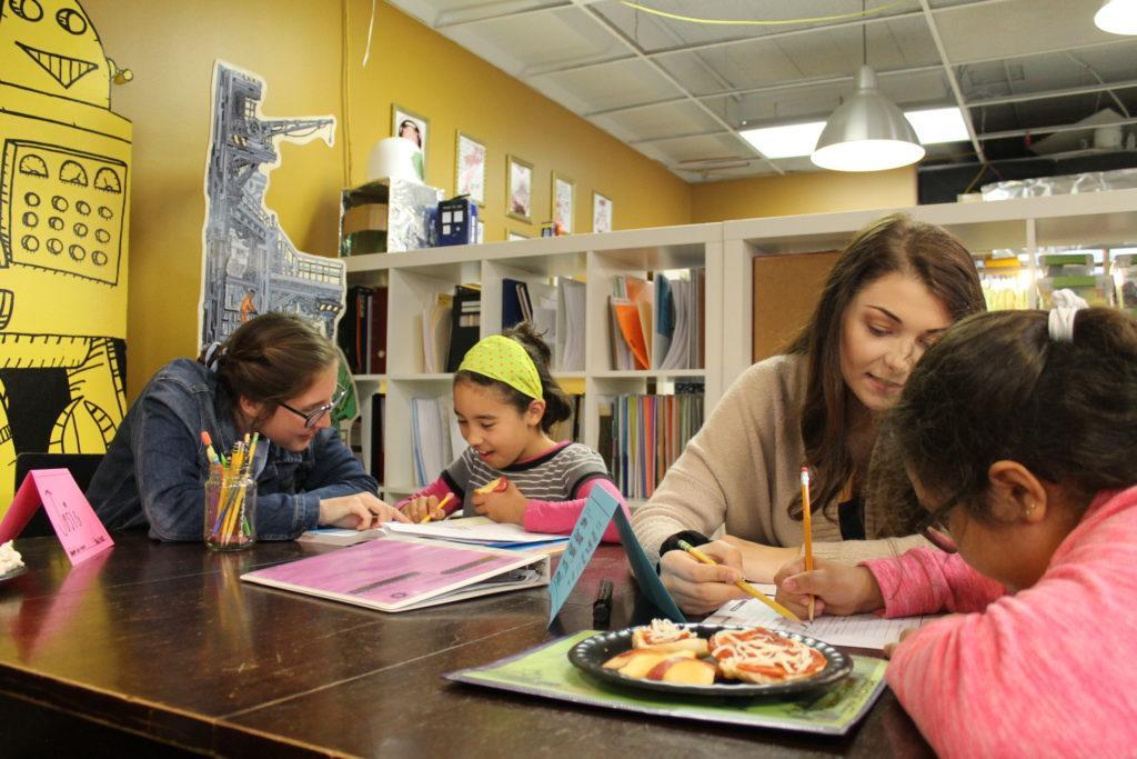 Students work in small groups with peers and adult volunteers to brainstorm, write, revise, share, and draft an original story. Weekly commitment and program registration is required.