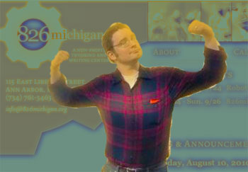 Adam has been a HUGE help to us over the last few months. From posting workshop schedules and blogs to creating new pages and updating existing ones to getting roped into helping out with our Onward Robots store website to making a website for 8/26 Day, and beyond. Way beyond. We’d tell you how far beyond, but we don’t really know the proper words to say, which is to say: They would be computer-y, and very likely misused.