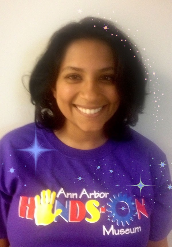 There’s a reason Aneesha looks so natural in the lab coats we wear for our Life-Sized Poetry Board Game field trips. . .she is a bona-fide scientist and currently works at our fellow nonprofit, the Ann Arbor Hands-on Museum, designing creative outreach programs. We are so pleased that Aneesha lends us her time as a volunteer to participate in OUR programs. Who says you have to choose between being scientific and being creative? Aneesha is a fantastic example of someone who uses both sides of her brain, to great effect.