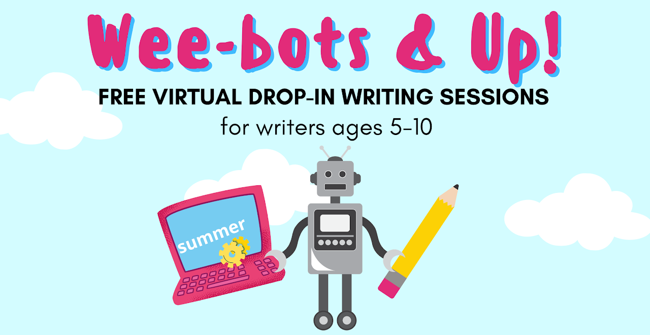 Register and drop in to join us on Zoom for free virtual writing sessions for young writers ages 5-10 (we call them wee-bots because we have a robot store)! All ability levels are invited to these fun, informal session where we play around with writing– from the physical act of actually writing to the creative ideas involved. More information HERE.
