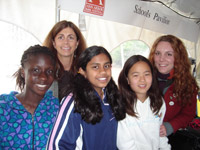| Published writers Ore, Nivetha, and Diana, with Haisley teacher Valerie Shedd and Amy, braved the cold and the wet to read to the masses at the Ann Arbor Book Fest. |