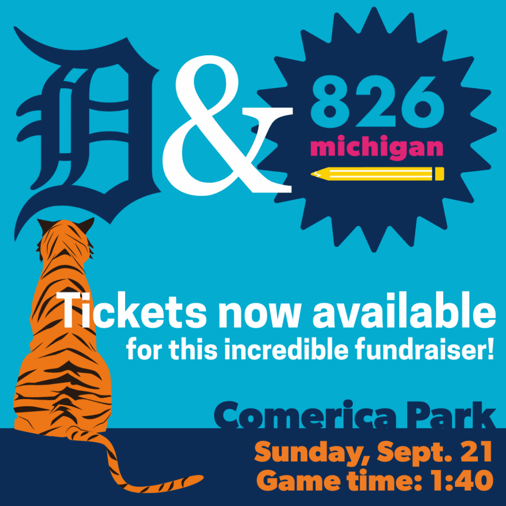 Join us at Comerica Park for the final home game of the Detroit Tigers’ 2025 season on Sunday, Sept. 21! Cheer on the Tigers at Kids Day and celebrate the impact of our free writing and literacy programs for K-12 students in southeastern Michigan. We’ll be recognized as the Group Charity of the Game by the Detroit Tigers as they take on the Atlanta Braves (game time 1:40 p.m.).