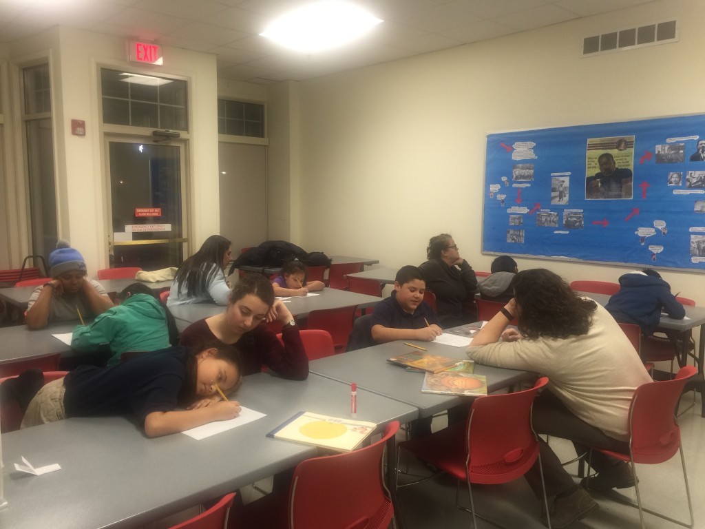 Wee-Bots is the creative writing workshop led by 826michigan each Wednesday evening at the Campbell Branch of the Detroit Public Library for school-aged students. Tonight’s young writers represent classrooms from four different Detroit schools and they enthusiastically await the writing prompt, even after a hard day of academics. As they enter, an entire team of smiling volunteers greets them, ready to write alongside each student, one-to-one.
