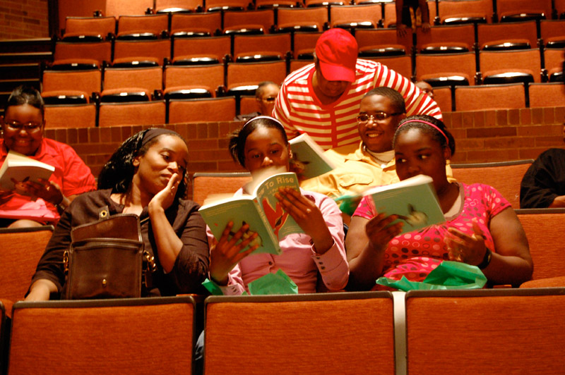 Trudy Adams, teacher extraordinaire, along with 826michigan volunteers Sam Weiss, Katie Jones, Lauren Walbridge, and Jared Hawkley, poured out thanks and congratulatory warm fuzzies; special guest Dave Eggers gave an excellent and inspiring speech; and then, the much anticipated moment: students opened their wrapped books, and finally got to see the culmination of all their hard work: